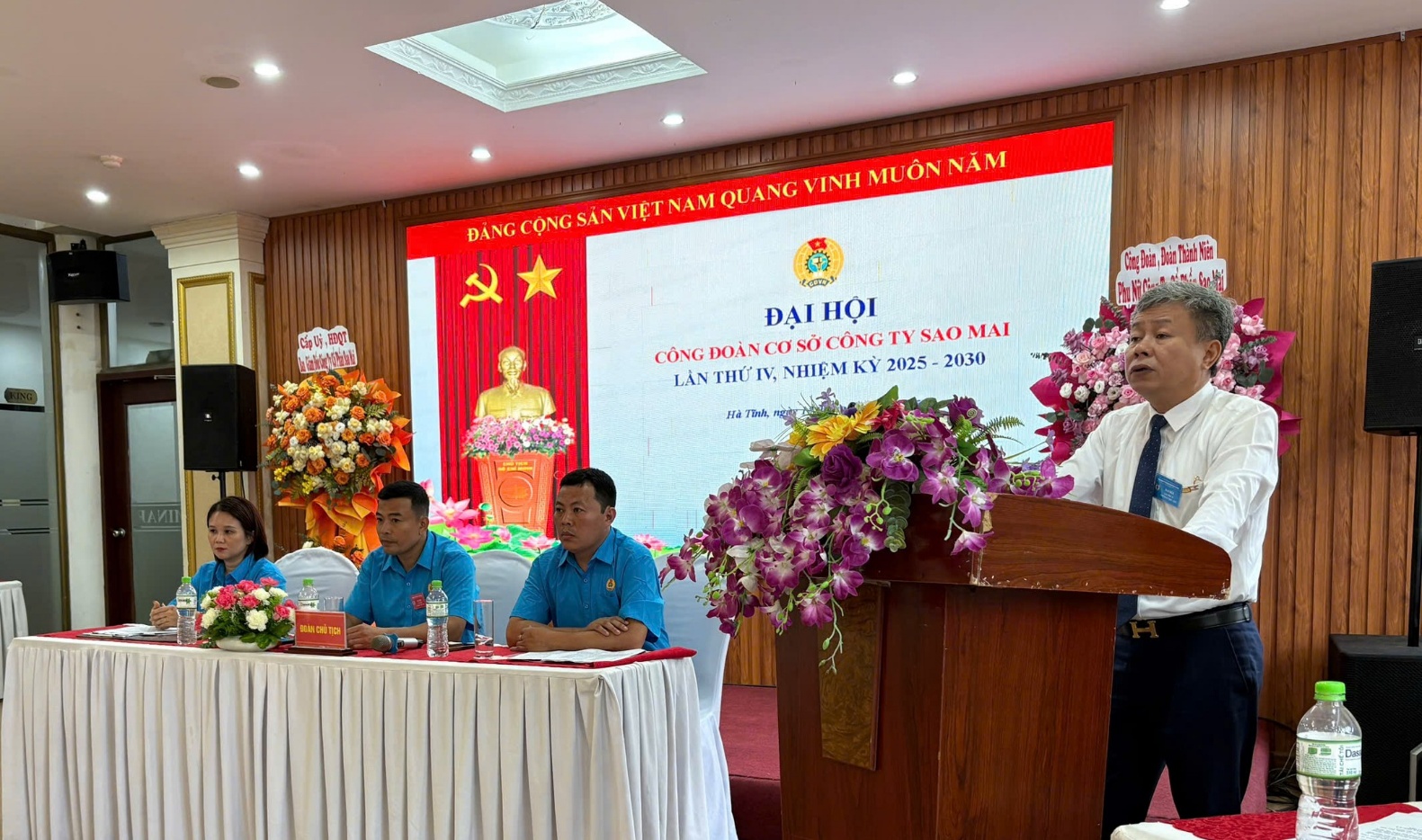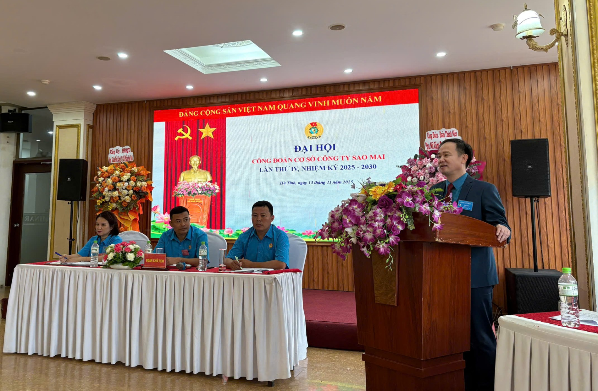 Đại hội vinh dự được đón các Đại biểu đến tham gia đông đủ, đặc biệt có sự tham gia của đồng chí: Nguyễn Xuân Hải - Bí thư chi bộ, Chủ tịch HĐQT, Giám đốc công ty Cổ phần Sao Mai. Và đồng chí Ngô Đình Vân – Phó Chủ tịch LĐLĐ tỉnh Hà Tĩnh.